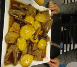 3. Bake at about 170C for approx. 2-3 hours, checking every now and again and adding more water if necessary. The meat should be falling apart. Add the peas and cook for a further 5 minutes.